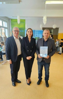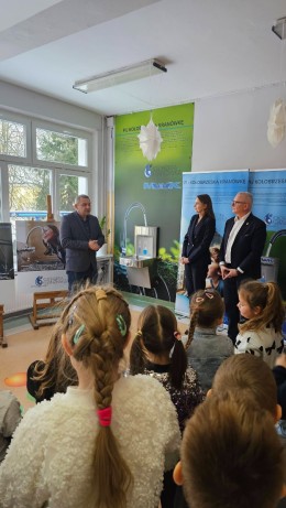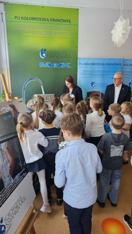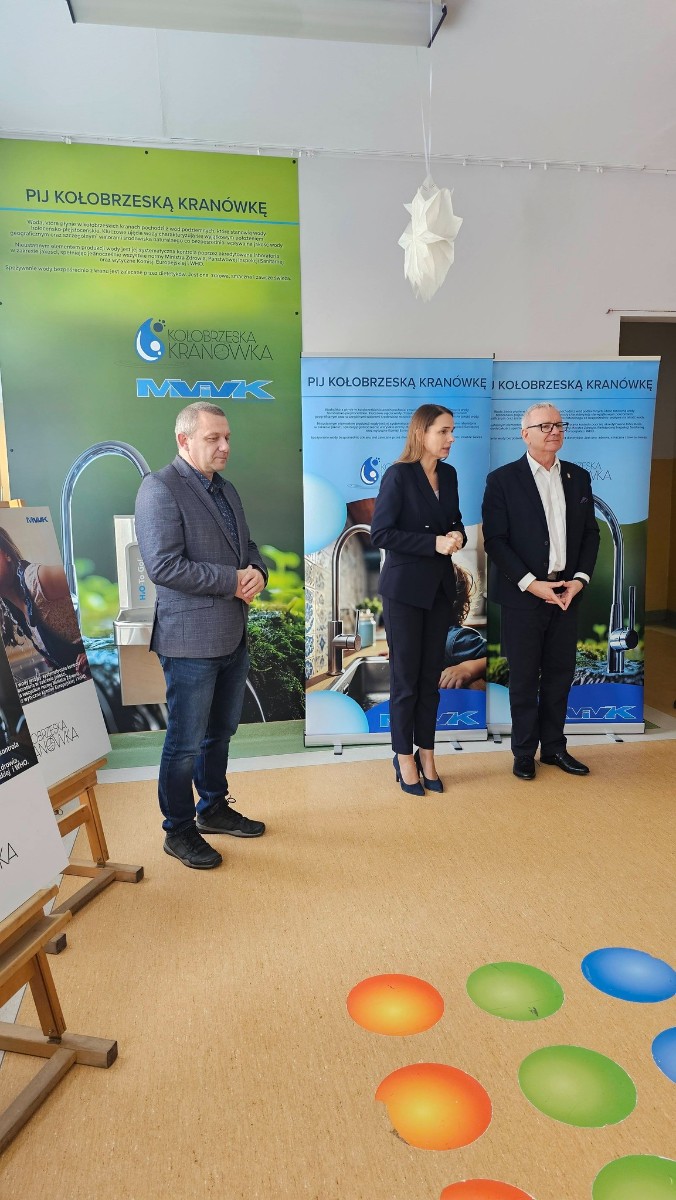 Na zdjęciu: Zastępcą Prezydenta ds. Społecznych Ilona Grędas-Wójtowicz, Dyrektor Szkoły Podstawowej nr 8 Adam Swat, Prezes Zarządu MWiK Sp. z o.o. w Kołobrzegu Rafał Piątkowski