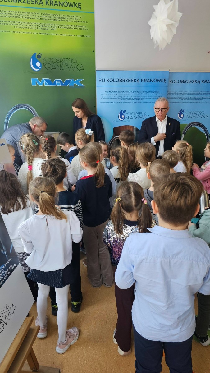 Prezes Zarządu „Miejskie Wodociągi i Kanalizacja” Sp. z o.o. w Kołobrzegu Rafał Piątkowski w ramach kampanii „Pij Kołobrzeską Kranówkę” przekazał społeczności uczniowskiej stację wody pitnej. W ten sposób uczniowie Szkoły Podstawowej nr 8 im.Kpt.żw Konstantego Maciejewicza mają zapewniony stały dostęp do świeżej, bezpiecznej i wysokojakościowej wody pitnej. Tym samym szkoła stała się kolejnym ważnym partnerem w realizacji naszej kampanii, w trakcie której propagujemy nie tylko picie wody prosto z kranu, ale także kształtujemy dobre nawyki żywieniowe oraz postawy proekologiczne, wspieramy edukację świadomego korzystania z zasobów wody.